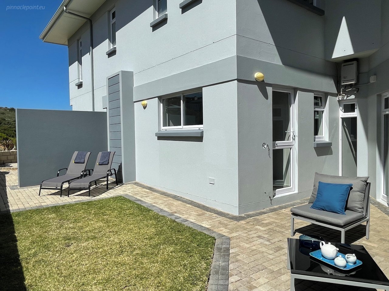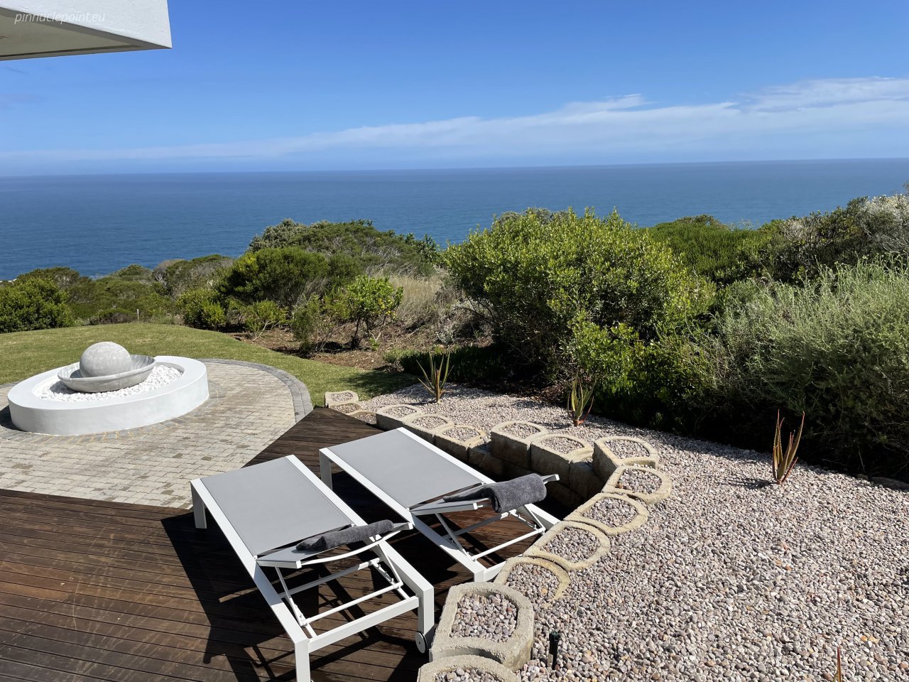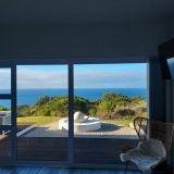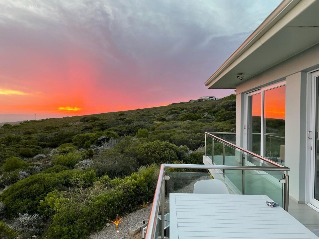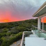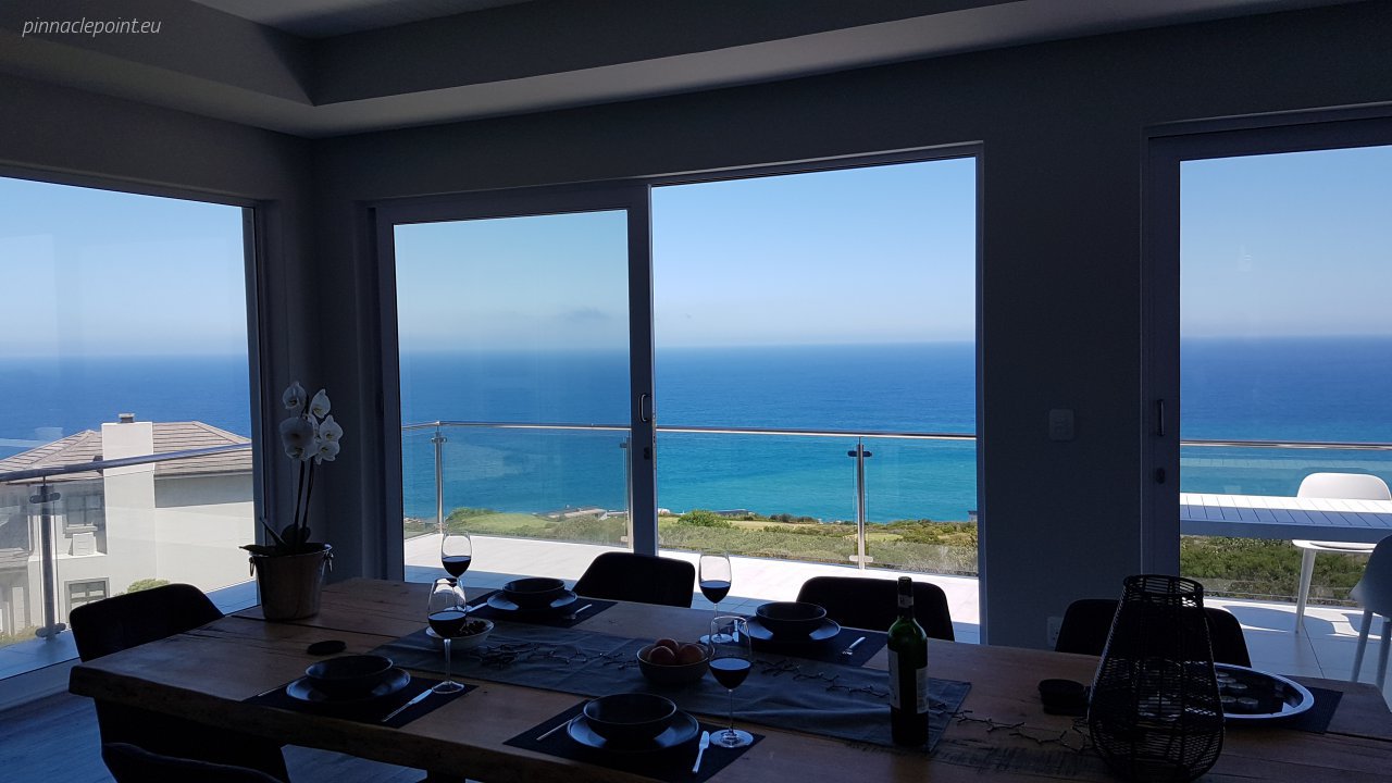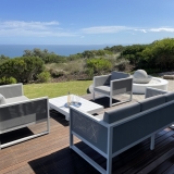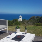 Die terras en balkon op die eerste verdieping word omring deur die see en Suid-Afrikaanse fynbostuine en bied asemrowende uitsigte en nooi u uit om rustige aande deur te bring met skouspelagtige sonsondergange.