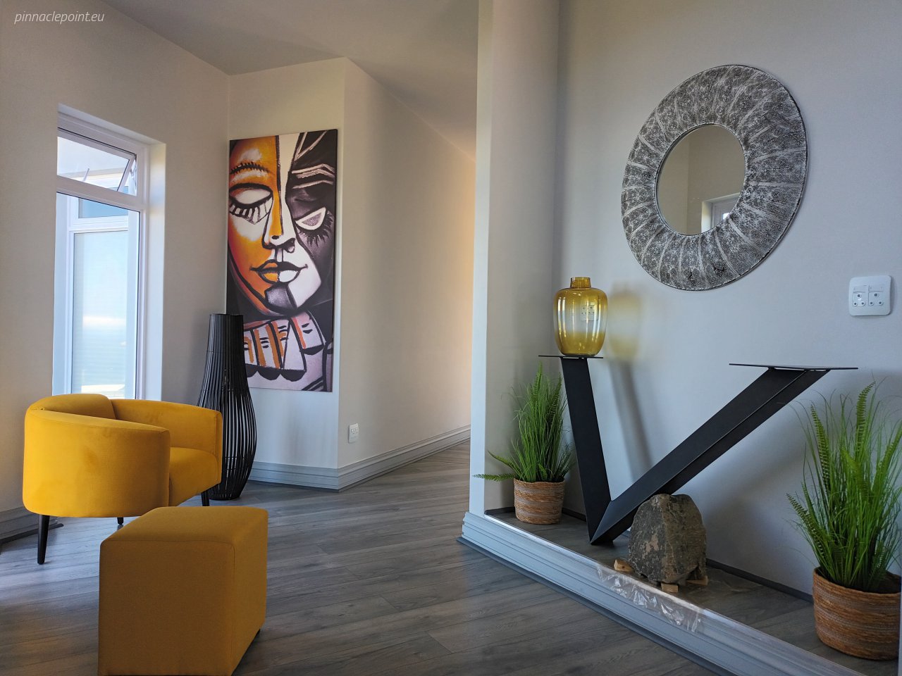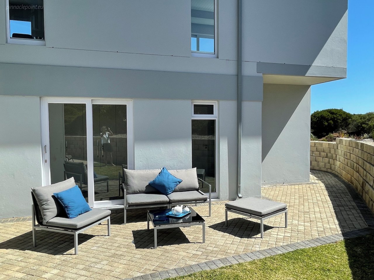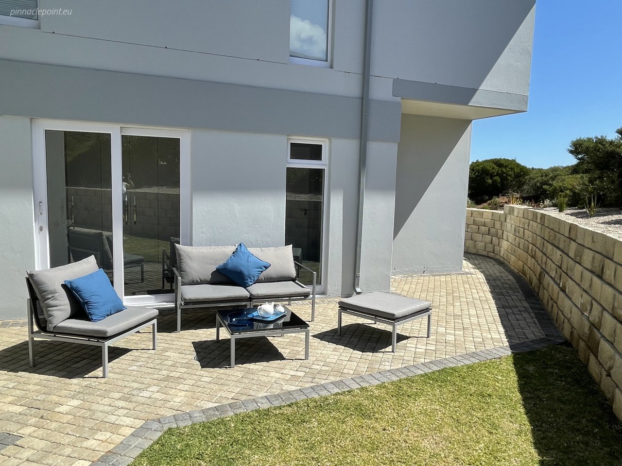 Die terras en balkon op die eerste verdieping word omring deur die see en Suid-Afrikaanse fynbostuine en bied asemrowende uitsigte en nooi u uit om rustige aande deur te bring met skouspelagtige sonsondergange.